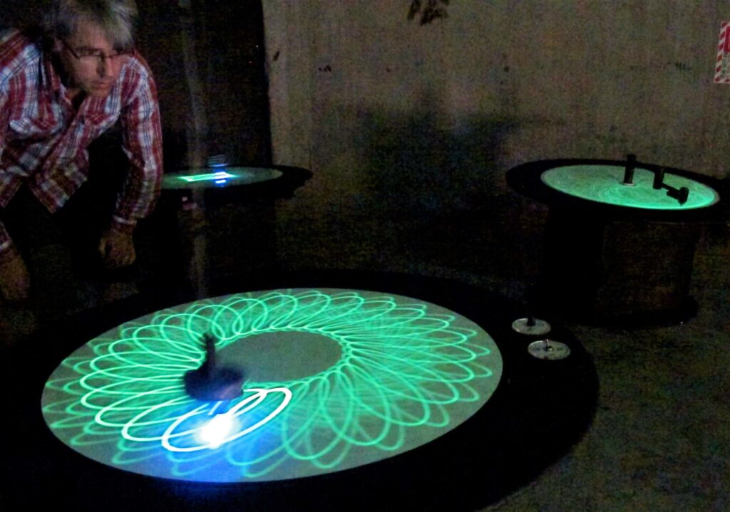 Plus I’ll have some slightly crazy prototypes for you to play with, a chaotic glow in the dark pendulum, a clock that shows the phase of the moon driven by the tide and an Aotearoa-centric armillary sphere.